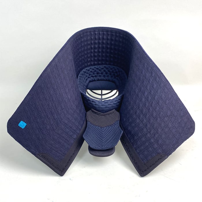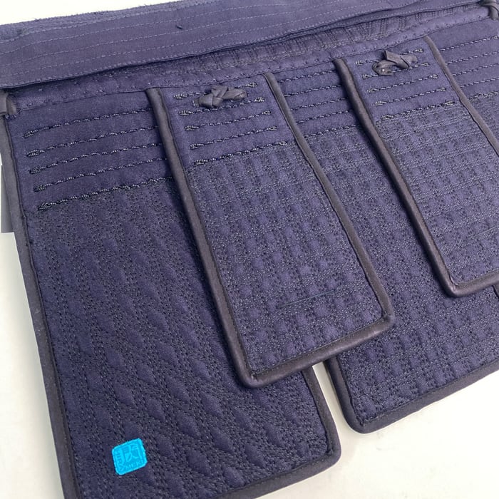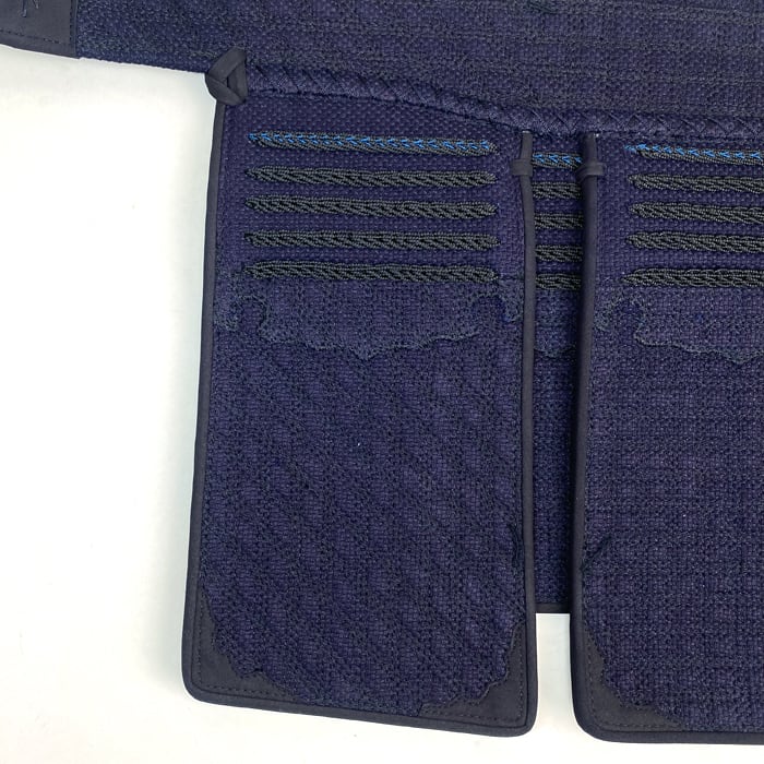 2019年発売の閃FT剣道衣。縦糸に藍染木綿糸、横糸にポリエステルマイクロファイバー糸を使用したハイブリッド生地は、使用後の色の落ち着き方が美しいとご好評いただいております。その生地を防具用にアレンジしこの度、松勘の技術とアイデアを結集した剣道具を完成させました。