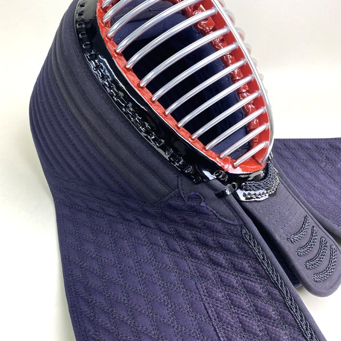 【面】面金ジュラルミン ヘリ・アゴ人口紺革 濃紺基盤刺 四段飾り